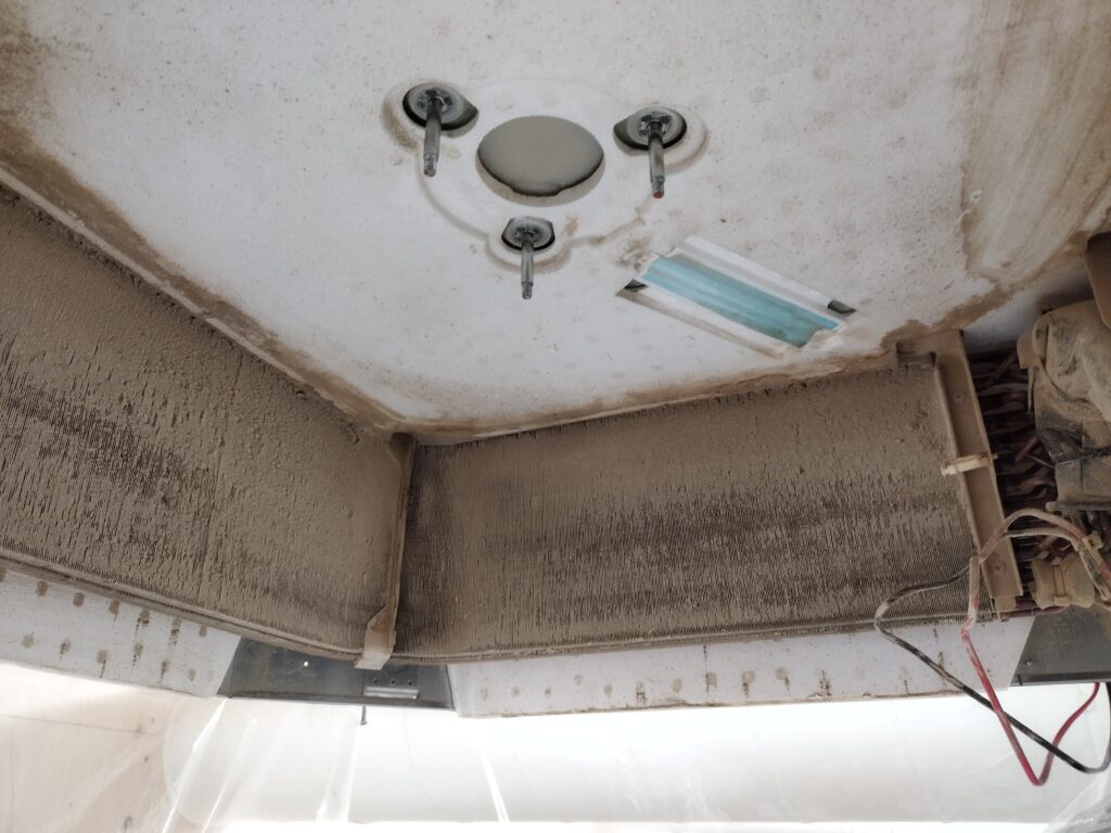内部のアルミフィンが埃と粉塵で埋まってます( ;∀;)